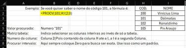 Usando o mesmo exemplo da tabela anterior, pra descobrir o código do cliente “Pix Araujo”, você faria assim: